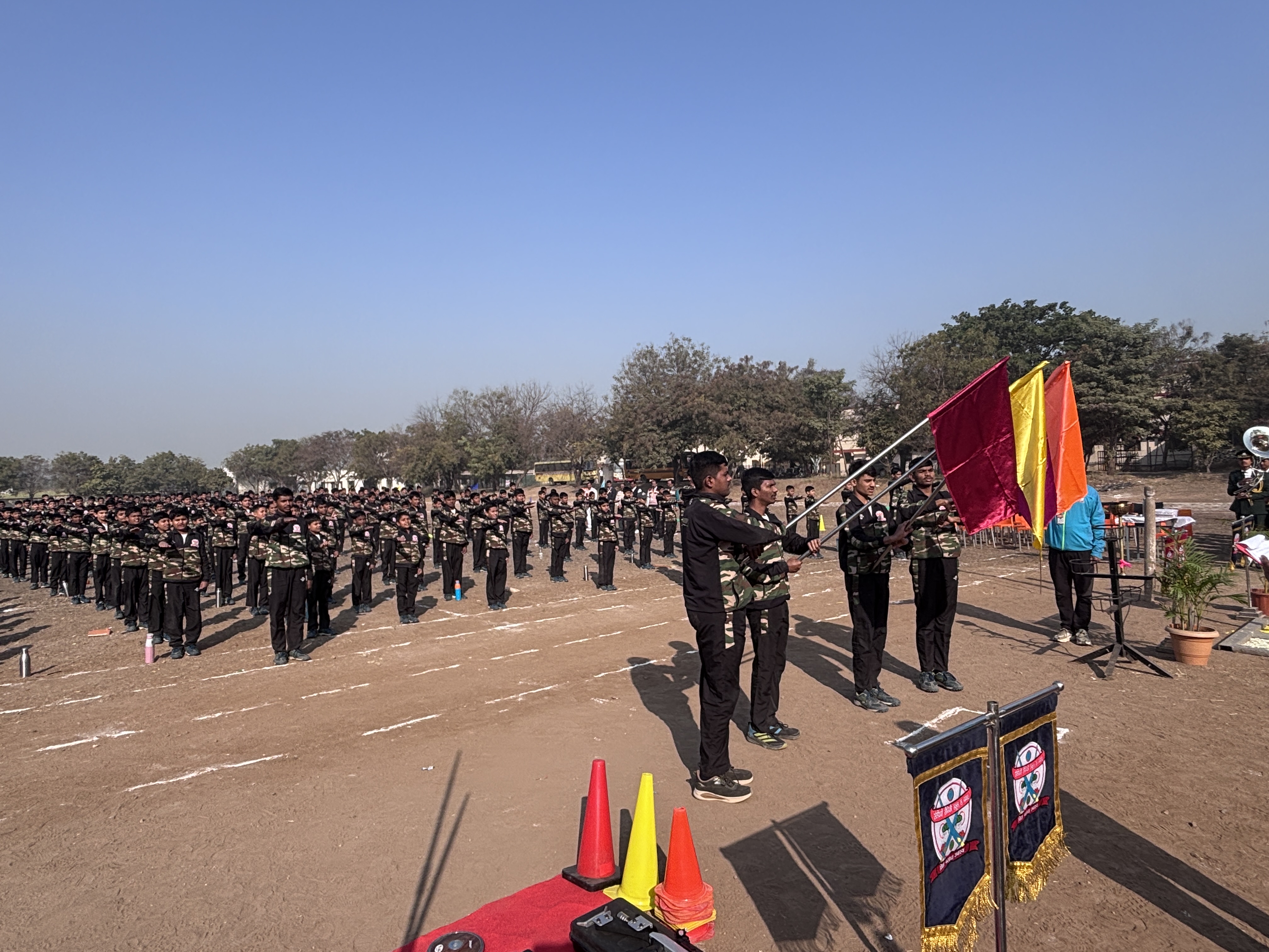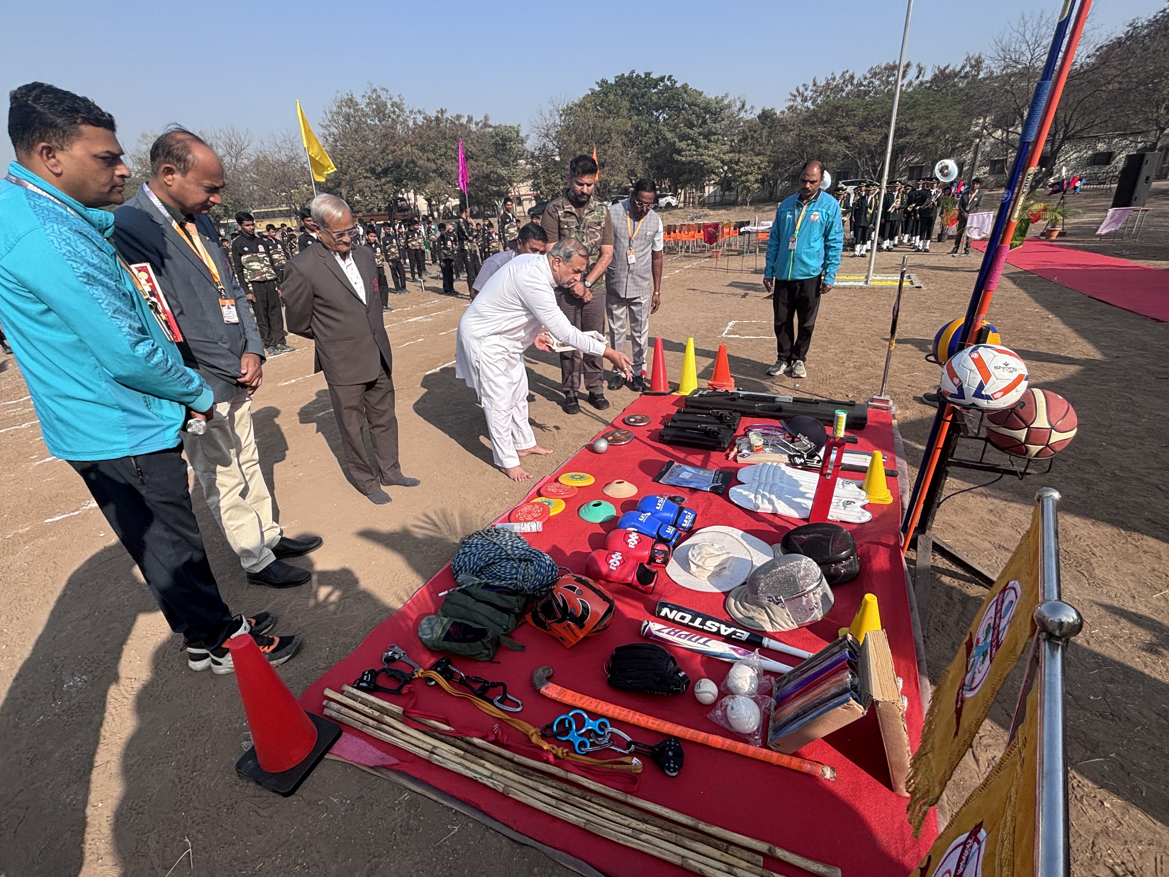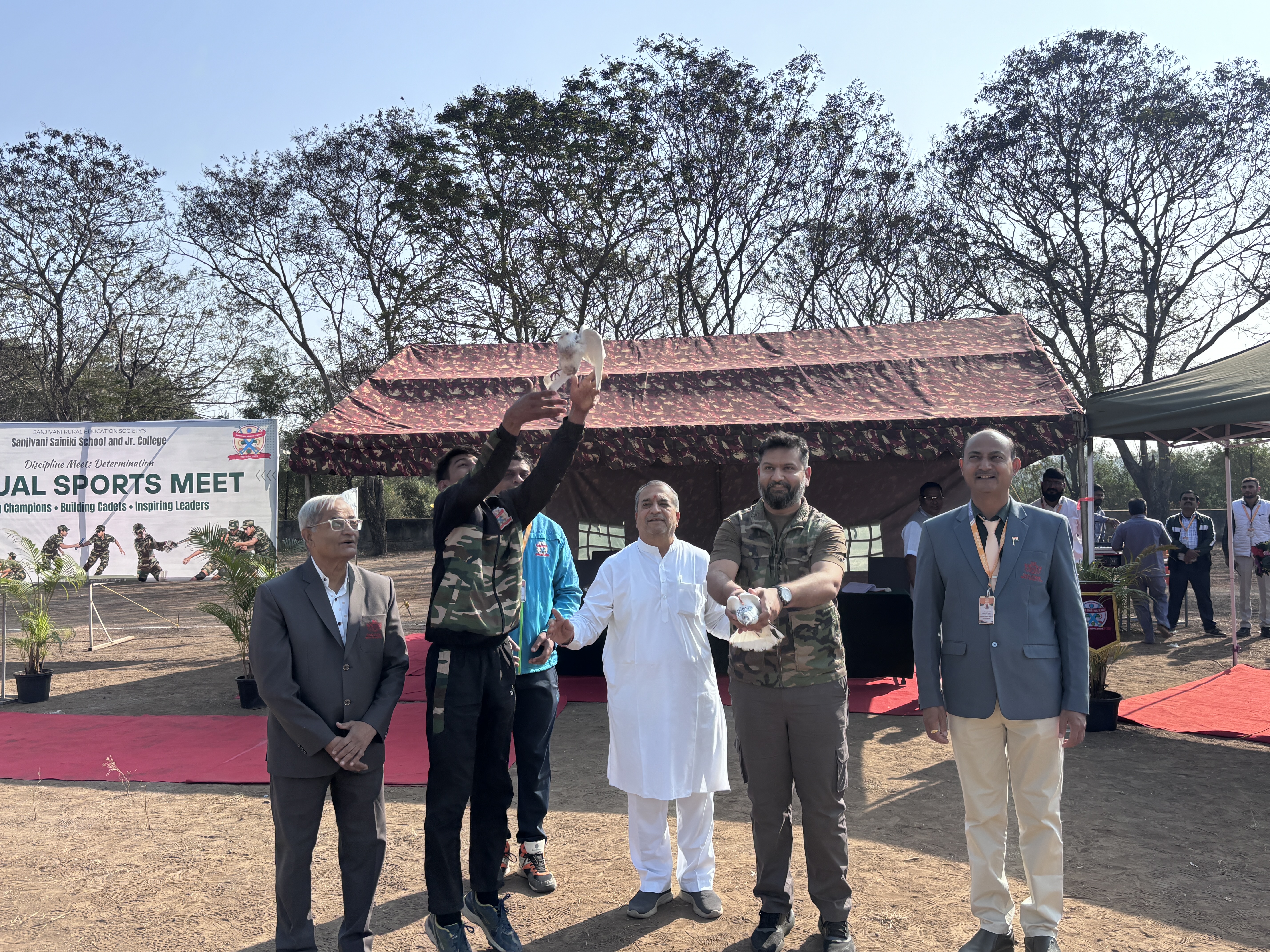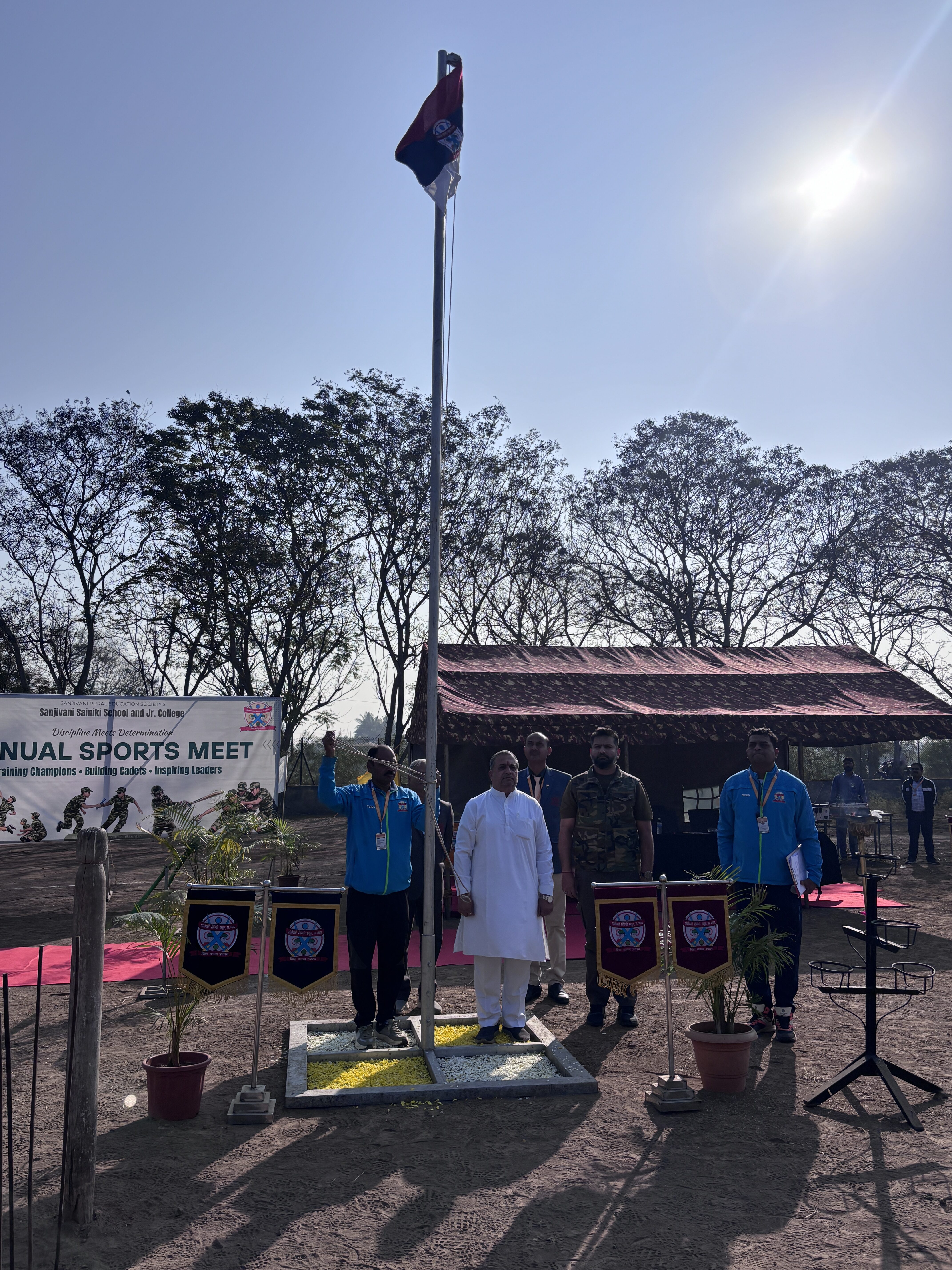 The Opening Ceremony of the Annual Sports Meet of Sanjivani Sainiki School and Junior College, Kopargaon was conducted in the esteemed presence of Honourable Chairman Shri. Nitindada Kolhe Saheb, Trustee Shri. Sumitdada Kolhe Saheb, Director Shri. Sangle Sir, Principal Shri. Darekar Sir, Campus Admin Shri. Bhaskar Sir, Hostel Superintendent Shri. Kolhe Sir, Press Reporters along with all Sports coaches, Teaching and Non-Teaching Staff, and Students.
