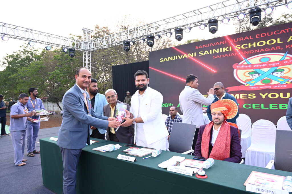The 26th Annual Day of Sanjivani Sainiki School & Junior College, Kopargaon was celebrated with great enthusiasm on 5th February 2026. The programme was graced by the presence of the Chief Guest, Hon. Samrat Warma Saheb, Founder of Krishna Enzytech and Managing Director of Collagen Lifesciences Pvt. Ltd.